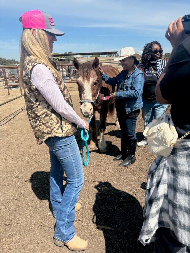 Sunday me and the gals from Sunday Launch went to the equestrian center in Huntington Beach. It was an adventure for sure! It was so fun meeting the people there including our host Paula Selina and everyone who works and helps out with the horses. We met some horses one was Winston.